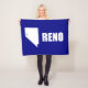 Blanket with flag of city of Reno, Nevada; blue flag with white shape of Nevada with star symbolizing Reno’s location inside the state