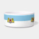 Pet Bowl with design with flag of Riga, capital city of Latvia; white and blue flag with coats of arms with two golden lions holding a shield in the center