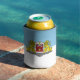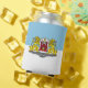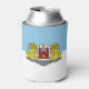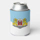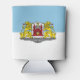 Can Cooler with design with flag of Riga, capital city of Latvia; white and blue flag with coats of arms with two golden lions holding a shield in the center