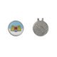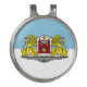 Golf Hat Clip and Ball Marker with design with flag of Riga, capital city of Latvia; white and blue flag with coats of arms with two golden lions holding a shield in the center