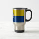Travel Mug with the flag of Riverside, California. A yellow and blue flag with the seal of the city in the center