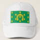 Hat with design with design with a flag of historic county of Rutland, in England, Great Britain; green flag with acorns and a golden horseshoe in the centre