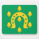 Mousepad with design with a flag of historic county of Rutland, in England, Great Britain; green flag with acorns and a golden horseshoe in the centre