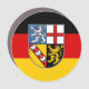 Car Magnet with flag of Saarland; design with horizontal tricolor of black, red and yellow (golden), with state’s coat of arms in the center