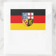 Sticker with flag of Saarland; design with horizontal tricolor of black, red and yellow (golden), with state’s coat of arms in the center