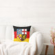 Throw pillow with flag of Saarland; design with horizontal tricolor of black, red and yellow (golden), with state’s coat of arms in the center