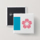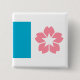 Button with a design with the flag of Salem, Oregon. A white and blue flag with a pink cherry blosson