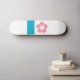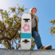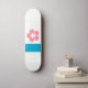 Skateboard with a design with the flag of Salem, Oregon. A white and blue flag with a pink cherry blosson