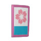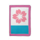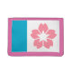 Wallet with a design with the flag of Salem, Oregon. A white and blue flag with a pink cherry blosson