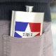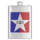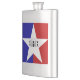 Flask with the flag of San Antonio, Texas. A blue and red flag with white star and an illustration of Alamo in the middle