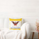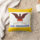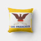 Throw pillow with flag of city of San Francisco, California; white flag with yellow border with an illustration of a phoenix rising from flames