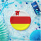 Paper Plate with flag of city of Santa Barbara, California; flag with vertical tricolor of white, red and yellow, with illustration of a red fort in the upper left corner
