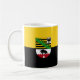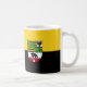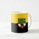 Mug with variant flag of Saxony-Anhalt; design with two horizontal bands of yellow (golden) and black, and with state’s coat of arms in the center