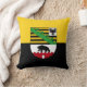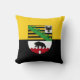 Throw pillow with variant flag of North-Rhine Westphalia (Nordrhein-Westfalens), design with horizontal tricolor of green, white and red; with a shield with illustration of river and horse in the center