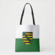 Tote Bag with variant flag of Saxony; design with two horizontal bands of green and white, and with state’s coat of arms in the center