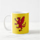 Mug with design with a flag of historic county of Somerset, in England, Great Britain; yellow flag with an illustration of a red dragon in the centre