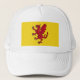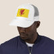 Hat with design with a flag of historic county of Somerset, in England, Great Britain; yellow flag with an illustration of a red dragon in the centre