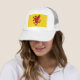 Hat with design with a flag of historic county of Somerset, in England, Great Britain; yellow flag with an illustration of a red dragon in the centre