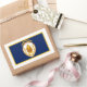 Sticker with the flag of Springfield, Massachusetts. A blue flag with a yellow and white outline and the illustration of the statue of Augustus Saint Gaudens in the center