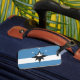 Luggage Tag with a design with the flag of Springfield, Missouri. A blue and white flag with a black and white star in the center