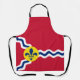 Apron with flag of city of St. Louis; red flag with white and blue waves and blue fleur-de-lys in yellow circle