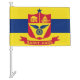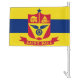 Car Flag with flag of city of St Paul, Minnesota; flag with three horizontal stripes of blue and yellow with red emblem in the center