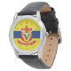 Watch with flag of city of St Paul, Minnesota; flag with three horizontal stripes of blue and yellow with red emblem in the center