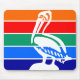 Mousepad with a design with the flag of St. Petersburg, Florida. A flag with orange, red, green, blue, and navy blue stripes with a symbol of white pelican
