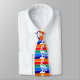 Tie with a design with the flag of St. Petersburg, Florida. A flag with orange, red, green, blue, and navy blue stripes with a symbol of white pelican