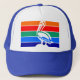 Hat with a design with the flag of St. Petersburg, Florida. A flag with orange, red, green, blue, and navy blue stripes with a symbol of white pelican