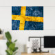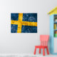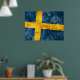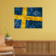 This item has a distressed style Swedish flag at a slight angle. The flag of Sweden is a gold Scandinavian cross on a blue field that extends to the edges of the flag.