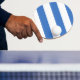 Ping pong paddle with design with flag of Tallinn, capital city of Estonia; white and blue striped flag