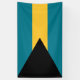 This design features the national flag of the Bahamas (known officially as the Commonwealth of The Bahamas), which is a country within the Lucayan Archipelago of the West Indies in the Atlantic. The archipelagic state consists of more than 700 islands, cays and islets in the Atlantic Ocean. The Bahamas is located north of Cuba and Hispaniola Island (Haiti and the Dominican Republic), northwest of the Turks and Caicos Islands, southeast of the US state of Florida and east of the Florida Keys. The capital of the Bahamas is Nassau on the island of New Providence. The other main inhabited islands are Grand Bahama, Eleuthera, Cat Island, Rum Cay, Long Island, San Salvador Island, Ragged Island, Acklins, Crooked Island, Exuma, Berry Islands, Mayaguana, the Bimini islands, Great Abaco and Great Inagua. The largest island is Andros.