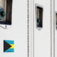 The flag of the Bahamas has an approximately 1:2 aspect ratio. The black equilateral triangle on the left represents the unity and determination of the people of the Bahamas. The triangle is oriented toward three equal-width stripes symbolizing areas of natural resource; two aquamarine stripes at the top and bottom of the flag representing the sea and one gold stripe representing the land. The flag was adopted on July 10, 1973. The civil ensign is a red ensign with a white cross throughout and the national flag in the upper-hoist corner; the naval ensign is a white ensign with the same canton.