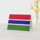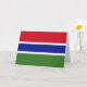 This design features the national flag of The Gambia (officially known as the Republic of The Gambia), which is a country in West Africa. The Gambia is the smallest country within mainland Africa, and it is surrounded by Senegal, except for its western coast on the Atlantic Ocean. The Gambia is situated on both sides of the lower reaches of the Gambia River, the nation's namesake. The Gambia River flows through the centre of The Gambia and empties into the Atlantic Ocean. The capital city of The Gambia is Banjul, whereas the largest city of The Gambia is Serekunda.