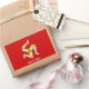 The flag of the Isle of Man, or flag of Mann (Manx: brattagh Vannin), is a triskelion, composed of three armoured legs with golden spurs, upon a red background. It has been the official flag of Mann since 1931 and is based on the Manx coat of arms, which dates to the 13th century. The three legs are known in Manx as ny tree cassyn ("the three legs"). The triskelion is an ancient symbol, used by the Mycenaeans and the Lycians. It is not known for certain why the symbol was originally adopted on the Isle of Man. Before its adoption in 1931, the official flag of the Isle of Man was the Union Flag. There is also a civil ensign for the Isle of Man. This flag was first authorised on 27 August 1971. Another Manx flag is the flag of the Tynwald, which has flown outside the Legislative Buildings since 1971.