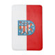 Bath mat with variant flag of Thuringia; design with two horizontal bands of red and white, and emblem with lion in the center
