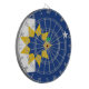 Dartboard with a design with the flag of Topeka, Kansas. A blue and white flag with a yellow star symbol