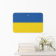 The flag of Ukraine is a banner of two equally sized horizontal bands of blue and yellow. The top represents sky and the yellow represents wheat.