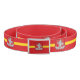Belt with design with design with flag of Vilnius, capital city of Lithuania; red flag with yellow stripe and coats of arms with two golden lions holding a shield in the center