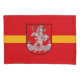Pillowcase with design with flag of Vilnius, capital city of Lithuania; red flag with yellow stripe and coats of arms with two golden lions holding a shield in the center