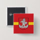 Square Button with design with flag of Vilnius, capital city of Lithuania; red flag with yellow stripe and coats of arms with two golden lions holding a shield in the center