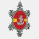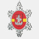 Snowflake Ornament Flag with design with flag of Vilnius, capital city of Lithuania; red flag with yellow stripe and coats of arms with two golden lions holding a shield in the center