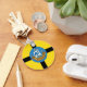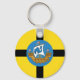 Keychain with a design with the flag of Wellington City, New Zealand. A yellow flag with a black cross and the seal of the city with an image of a ship in the center