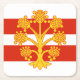 Paper coaster with design with a flag of historic county of Westmorland, in England, Great Britain; white and red striped flag with golden heraldic apple tree in the centre
