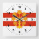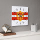 Wall Clock with design with a flag of historic county of Westmorland, in England, Great Britain; white and red striped flag with golden heraldic apple tree in the centre