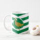 Mug with design with a flag of historic county of Wiltshire, in England, Great Britain; white and green flag with angled stripes and great bustard in the centre