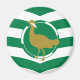 Magnet with design with a flag of historic county of Wiltshire, in England, Great Britain; white and green flag with angled stripes and great bustard in the center