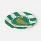 Paper plate with design with a flag of historic county of Wiltshire, in England, Great Britain; white and green flag with angled stripes and great bustard in the centre