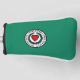 Golf putter cover with flag of city of Worcester, Massachusetts; green flag with white emblem with red heart in the center